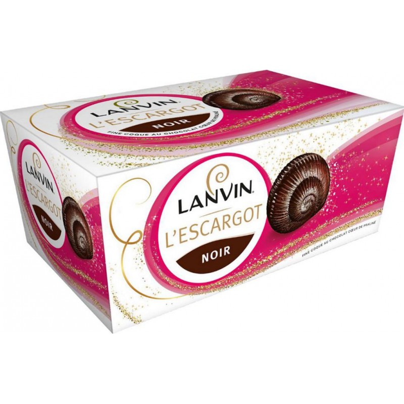 Vous allez déguster avec plaisir les Escargots de Chocolat Noir fourrés au Praliné de Lanvin. Praliné 47% (sucre, noisettes, amandes), pâte de cacao, sucre, beurre de cacao, beurre pâtissier, émulsifiant (lécithine de tournesol), arôme naturel de vanille. Produit unitaire EAN 7613035618237.