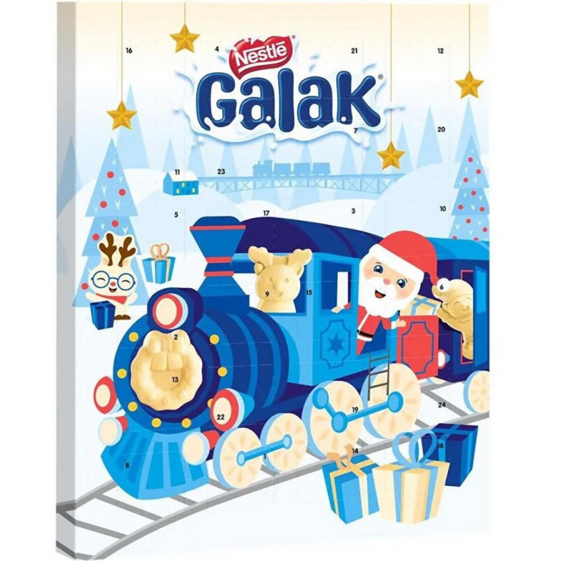 Patientez jusqu'à Noël avec le calendrier de l'avent au chocolat blanc GALAK! La marque incontournable de chocolat blanc enfin disponible pour les fêtes de fin d'année. Faites-vous plaisir et faites plaisir à vos enfants avec GALAK. sucre, beurre de cacao, LAIT entier en poudre, sirop de glucose, émulsifiant (lécithines), arôme naturel. Peut contenir: FRUITS A COQUE. Produit unitaire EAN 8445291171213.